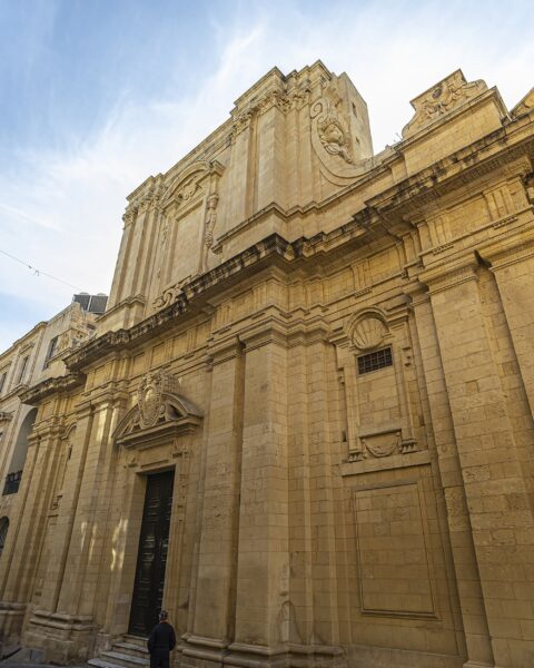 Din kienet il-knisja tal-Kulleġġ tal-Patrijiet Ġiżwiti. Imbagħad saret il-knisja tal-Università ta’ Malta. Bdiet tinbena fl-1593 u ġiet ikkonsagrata fl-1731. F’din il-knisja, il-Beatu Nazju Falzon mexxa l-Kongregazzjoni għall-membri tas-Servizzi Ingliżi ta’ żmienu u ressaq ħafna minnhom għall-magħmudija fil-Knisja Kattolika. F’din il-knisja nsibu wkoll devozzjoni speċjali lejn il-Madonna ta’ Pompej, li ssir nhar it-8 ta’ Mejju.